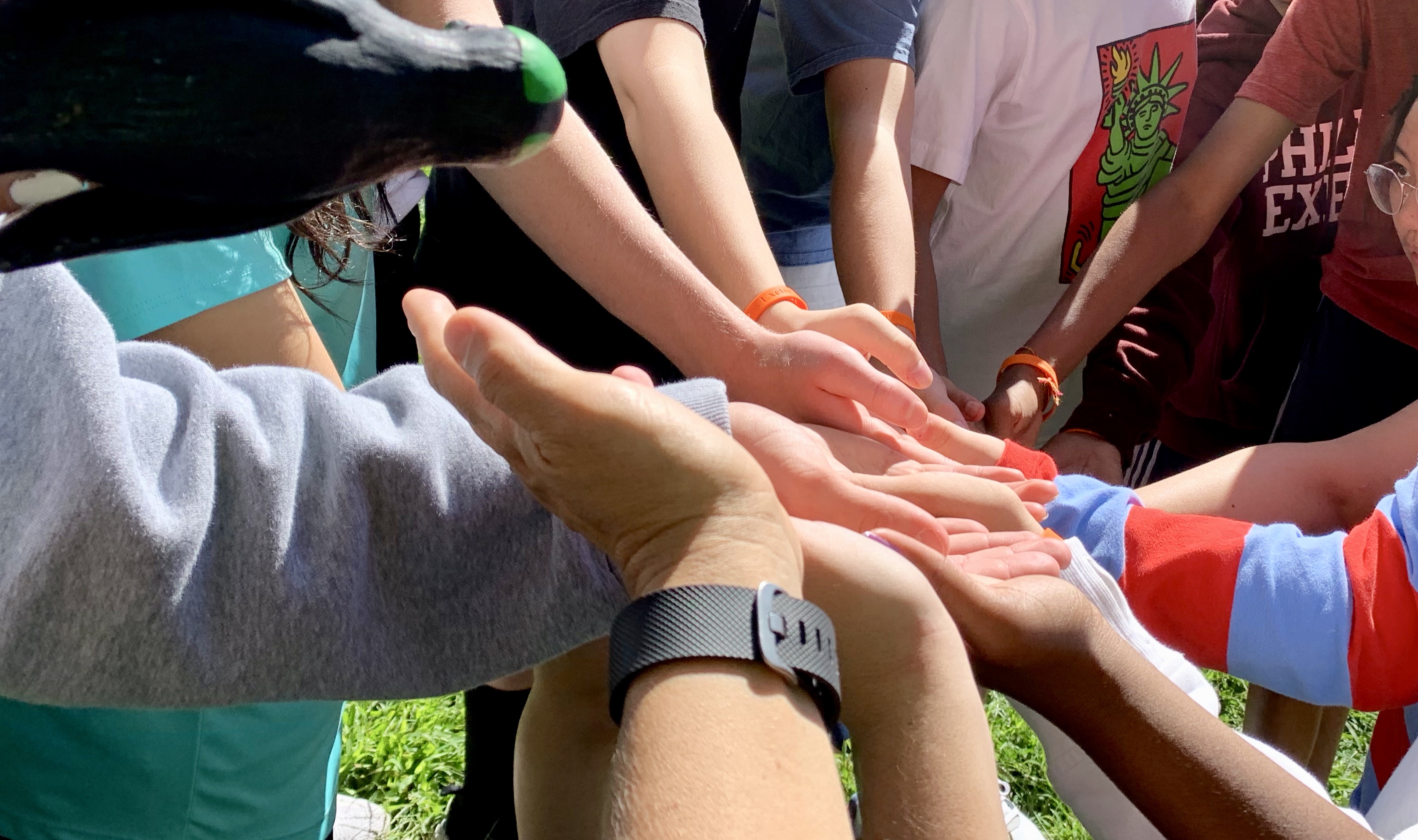 I had the chance to join a group of thirteen ninth graders for a day of fun and skill-building at the beautiful Browne Center for experiential education at the University of New Hampshire. The Browne Center facilitator was amazing in her true understanding of Harkness. She developed a day of low ropes and other activities that directly connected to the skills these students would need the next day in their first Harkness classes. Every activity revolved around communication and problem-solving, and as expected, the group made some mistakes along the way. There were downright wrong answers, circuitous but faulty attempts at solutions, distractions, correct answers that were ignored. And there were also moments of generosity, risk-taking, trust, vulnerability, question-asking, and effective direct communication as these students worked through the challenges. There was ALSO laughter, sunshine, and the beautiful New Hampshire woods. It was an environment conducive to “trying stuff out.” In fact, our facilitator emphasized that the group had a tendency to talk and plan too much and that this particular group needed to just take action and see if anything worked. They took that to heart, and it was just what they needed. Whether passing the penguin in record time (see picture), swinging across the lava pit, or solving a puzzle through a jumping rope, each activity illuminated a different element of successful (or unsuccessful) discussions. The facilitator asked us at the end of each activity, “What did you learn here that you want to remember for the Harkness table.” They added bit by bit to their Harkness table throughout the day.